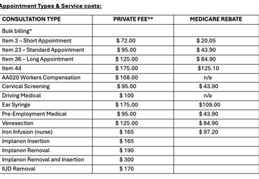 Cancellations must be made within 4 HOURS of the appointment time. If this notice is not given, the patient will incur a fee of $95 (inc. GST), regardless of bulk bill or private patient. This fee must be paid prior to attending the next booked appointment (face-to-face or telehealth).
